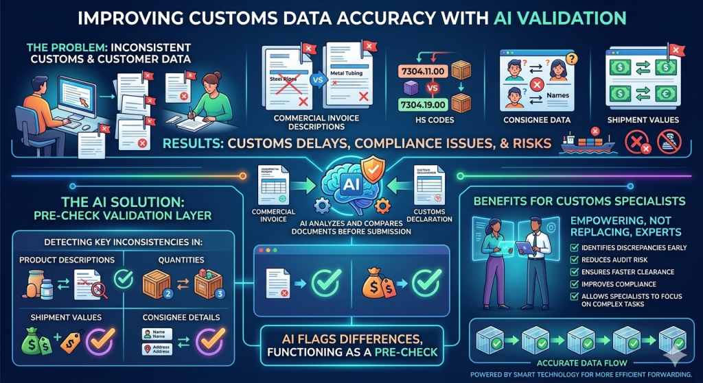 Instead of replacing customs specialists, the AI functions more like a pre-check layer, identifying discrepancies that would otherwise surface later in the process.