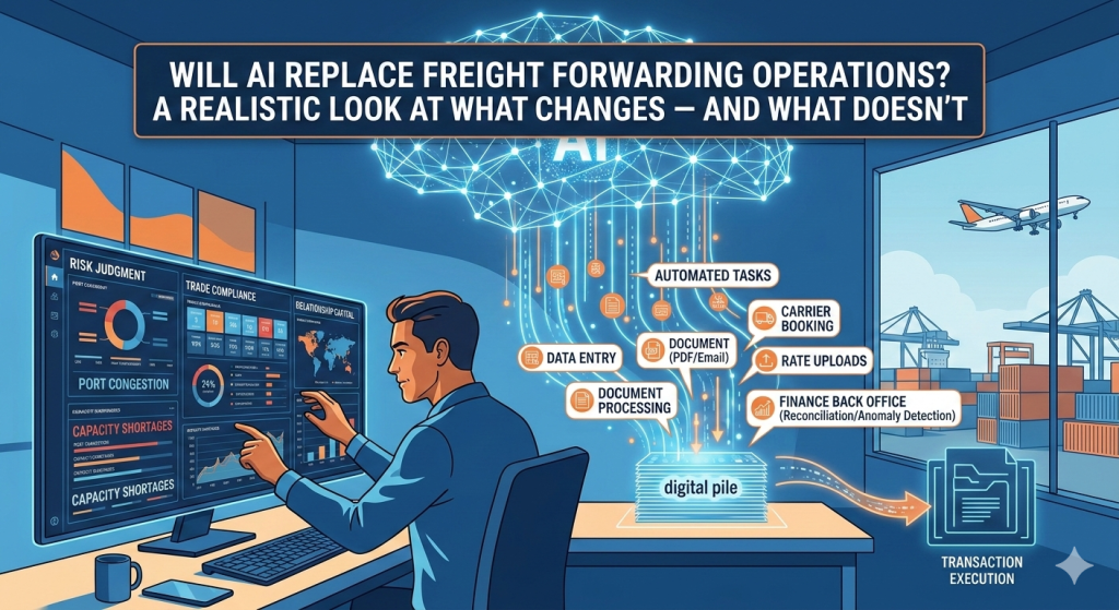 AI will significantly reduce repetitive operational roles in freight forwarding. Data entry, transaction execution, and back-office processing will become increasingly automated.